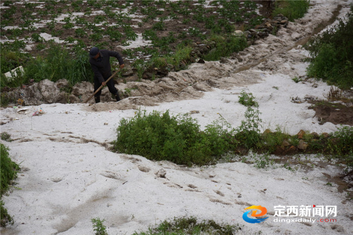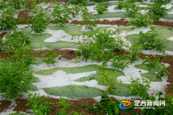 6月20日下午5时许,岷县秦许乡鹿峰等周围几个村遭受冰雹灾害,农作物不同程度受损。这是冰雹在下过半小时后,记者路过时拍摄的照片。定西日报 记者 王宏宾 摄 岷县气象局2017年06月20日14时25分发布岷县雷电黄色预警信号: 预计未来6小时内,该县部分地方有雷电,局地伴有冰雹、短时强降水和阵性大风,请注意防范局地强降水引发的中小河流洪水和山洪地质灾害。(王宏宾 ) 陇西遭遇暴雨冰雹天气突袭 农作物大面积受损
