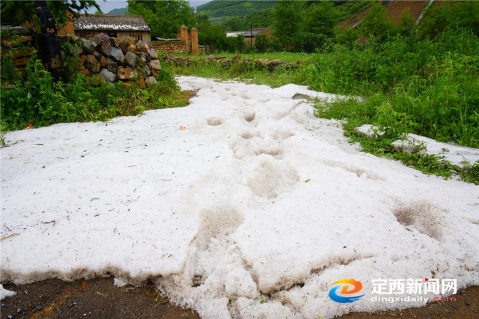 冰雹堆积 每日甘肃网讯 (通讯员 王小刚)6月19日下午5时许,陇西县和平乡漆树沟、朱家大湾等地突发暴雨并伴随着冰雹,持续近一个多小时。所在地区,庄稼被打严重,道路被冲毁。