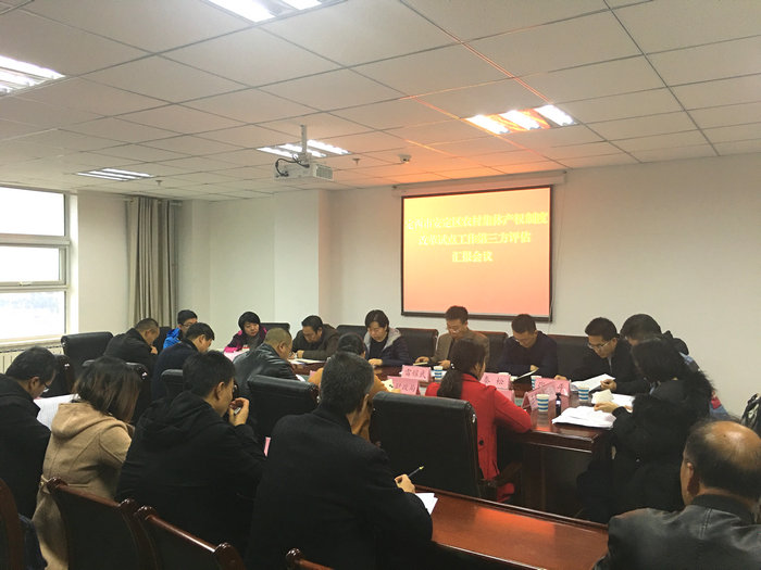 在召开的座谈会上,评估组一行听取了市县两级对农村集体产权制度改革试点工作汇报后,对我市开展改革试点的做法给予了充分的肯定,并提出了在强化集体资产管理、继续扩大改革范围、探索股权多种实现形式等方面的指导意见。