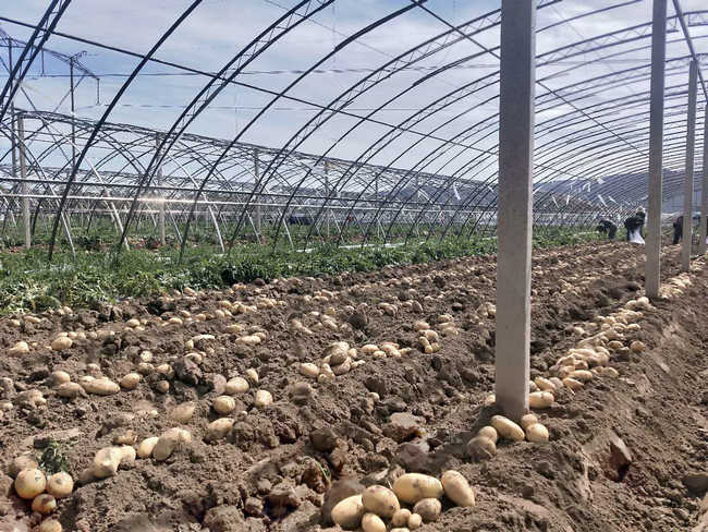 5月12日,临洮县新添镇福茹家庭农场种植的80亩双层钢架大棚马铃薯开始采收,比往年提前上市20天,开创了临洮马铃薯5月份上市的先河,福茹家庭农场有多年种植大棚马铃薯的好经验,在种植上注重栽培技术和品种的有机结合。在充分调研市场前景的基础上,从省外引进“希森6号”一级种,该品种呈长椭圆形,黄皮黄肉、薯皮光滑、芽眼浅,深受市场青睐。种植技术上采用高垄、黑膜、催芽播种。近10天来,地头批发价一直保持在每公斤2.8元左右,比其它品种每公斤高出0.2元。经测产,每亩产量达到了4000公斤,而且大薯率较高,仅3两以上的商品薯亩收入就达到了8000元以上。