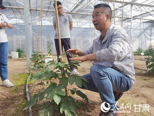 在甘肃省定西市安定区香泉镇的马铃薯产业园内,定西马铃薯研究所负责人李进福正和技术人员探讨马铃薯标准化种植、种薯繁育等情况。今年是推进定西市马铃薯产业高质量发展的关键期和突破期,马铃薯产业如何发展?如何提升?这位“洋芋专家”胸有成竹。