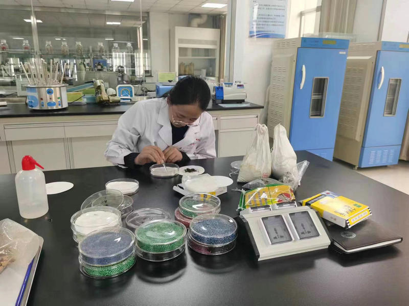 “检”——强化质量管控。为进一步服务好全县中药材种子种苗产业,防止不合规种子流向市场,依托县中医药研究院实验室通过检测机构CMA和CATL“双认证”的有利条件,对2023年中药材标准化育苗基地所播的党参、黄芪、黄芩、防风、柴胡、甘草等10个品种124个样品进行了千粒重、发芽率、健康度、种子形态特征鉴定等指标的全覆盖检测,确保全县中药材标准化育苗基地用种安全。