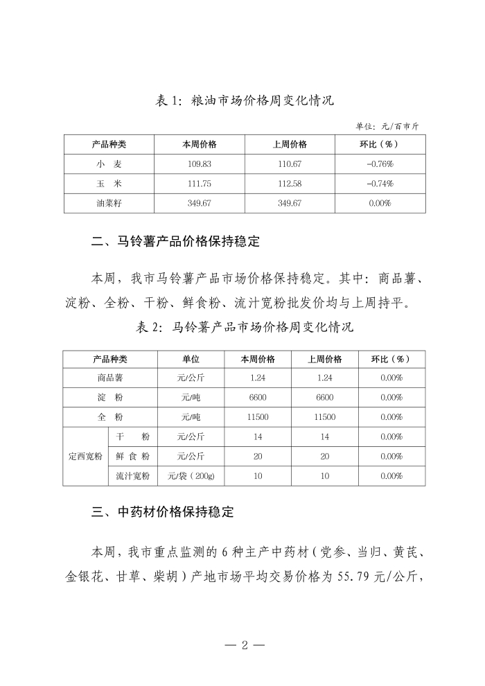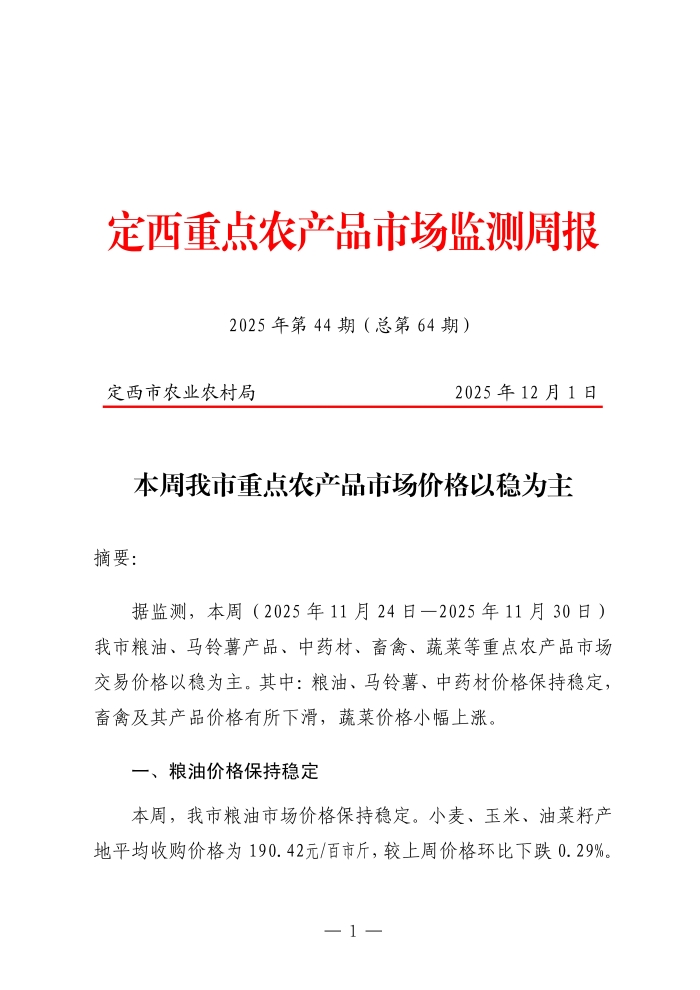 定西重点农产品市场监测周报(2025年第44期)