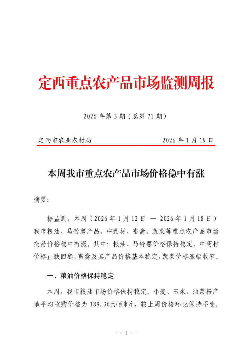定西重点农产品市场监测周报(2026年第3期)