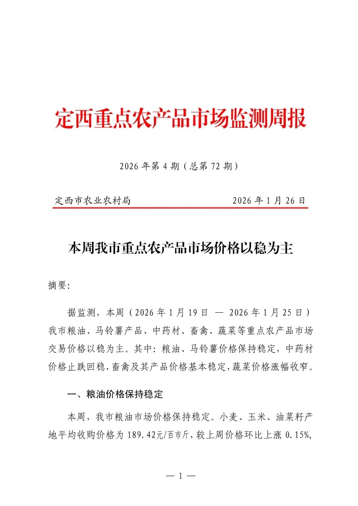 定西重点农产品市场监测周报(2026年第4期)