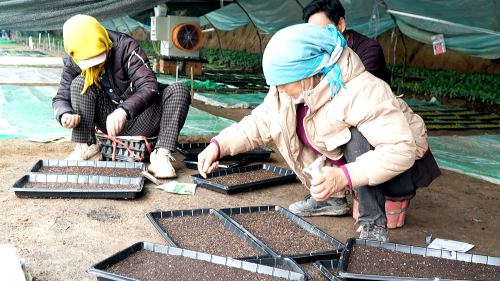 育苗工人 魏彩霞:“现在农闲时节,在春香合作社打工,一天100块钱,离家也近,把家里也能照顾上。”